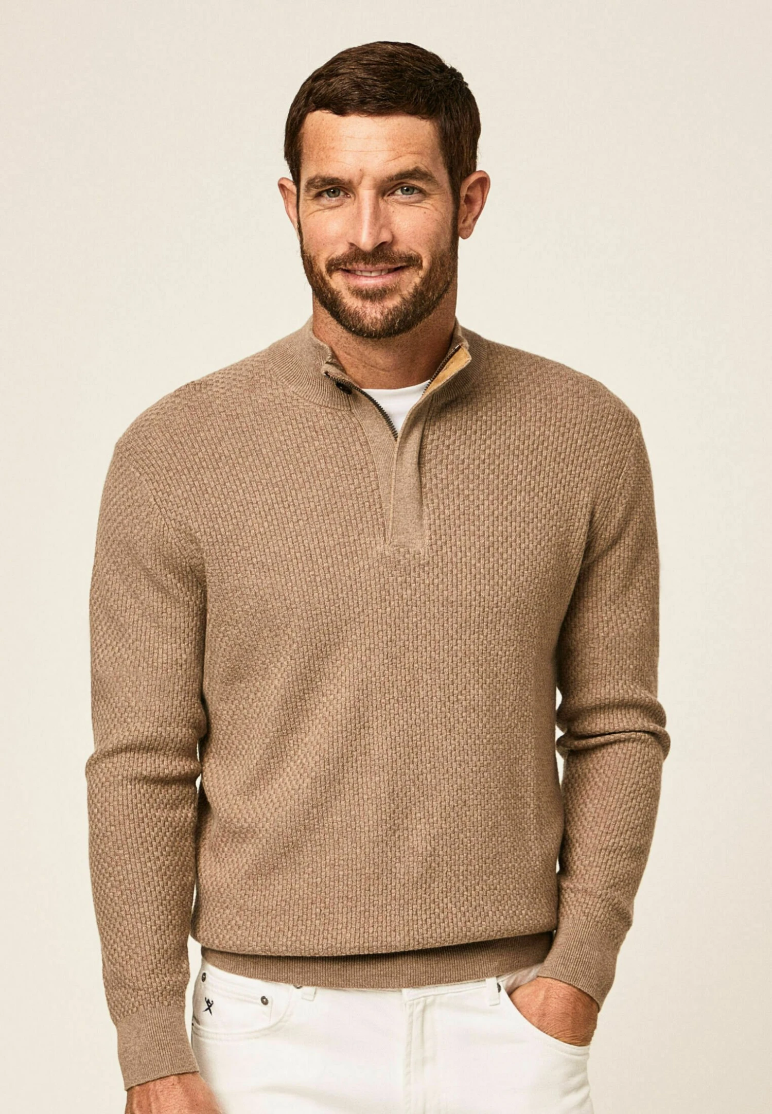 Hackett London Micro Sq Stitch Hzip – Trui – Taupe